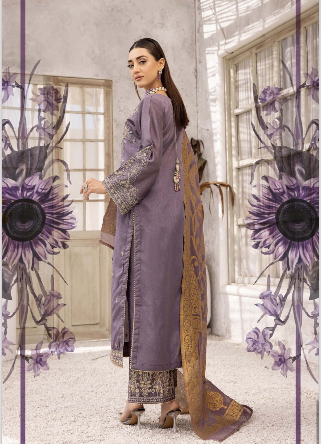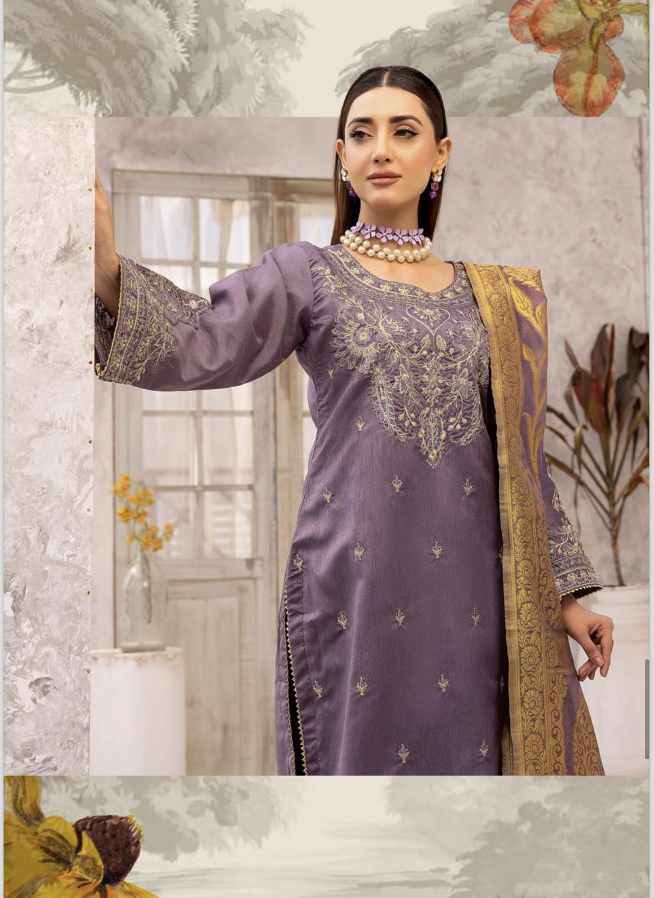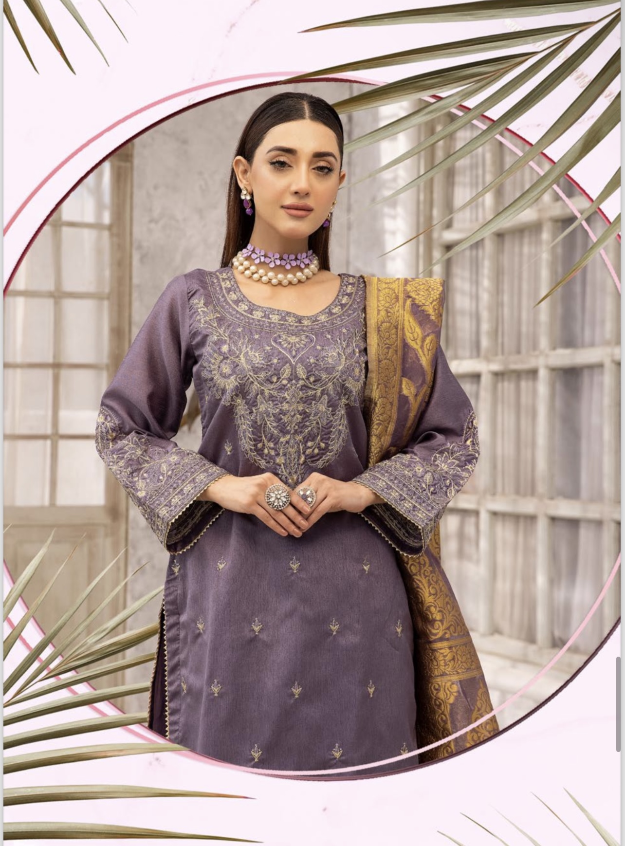 Raw silk emboidery collection with Embroidered Plazzo & Jacquard Dupatta